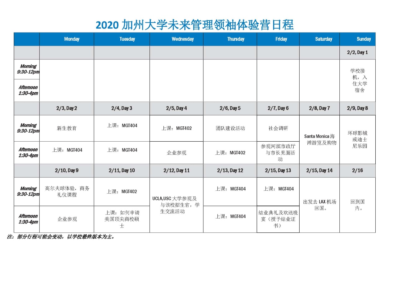 费用:3500美金(包含学费、住宿、一日三餐、保险、所有地面交通、景点门票),折合人民币仅约2.4万元。学生只需另外支付往返机票及签证申请费约5000人民币。总计3万元人民币。