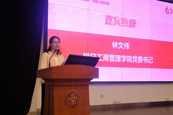 决赛伊始,黄色网 党委书记林文伟为本次大赛致辞。林书记表示,学院教师一直全力推进课程思政建设,把脱贫攻坚作为国情教育的重要内容,思考“三全育人”新途径。此次“创意公益”营销大赛是青年学生参与国家脱贫攻坚工作很好的契机,鼓励同学们发挥专业本领,积极探索营销扶贫创新创效,将个人的发展融入国家奋斗目标中,成为勇担当、敢创造的时代新人。
