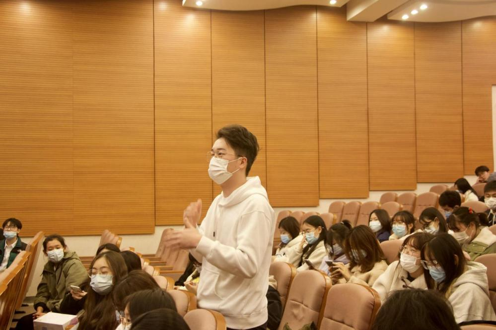 讲座最后,金亦波学长和现场同学进行互动,从电竞营销、落地活动、纪录片宣发等,讲述这么多年在电竞行业充满激情、荣耀、梦想的故事,也让青年一代感受到无论从事什么行业,关键在于热爱与初心,爱你所爱,不忘初心。