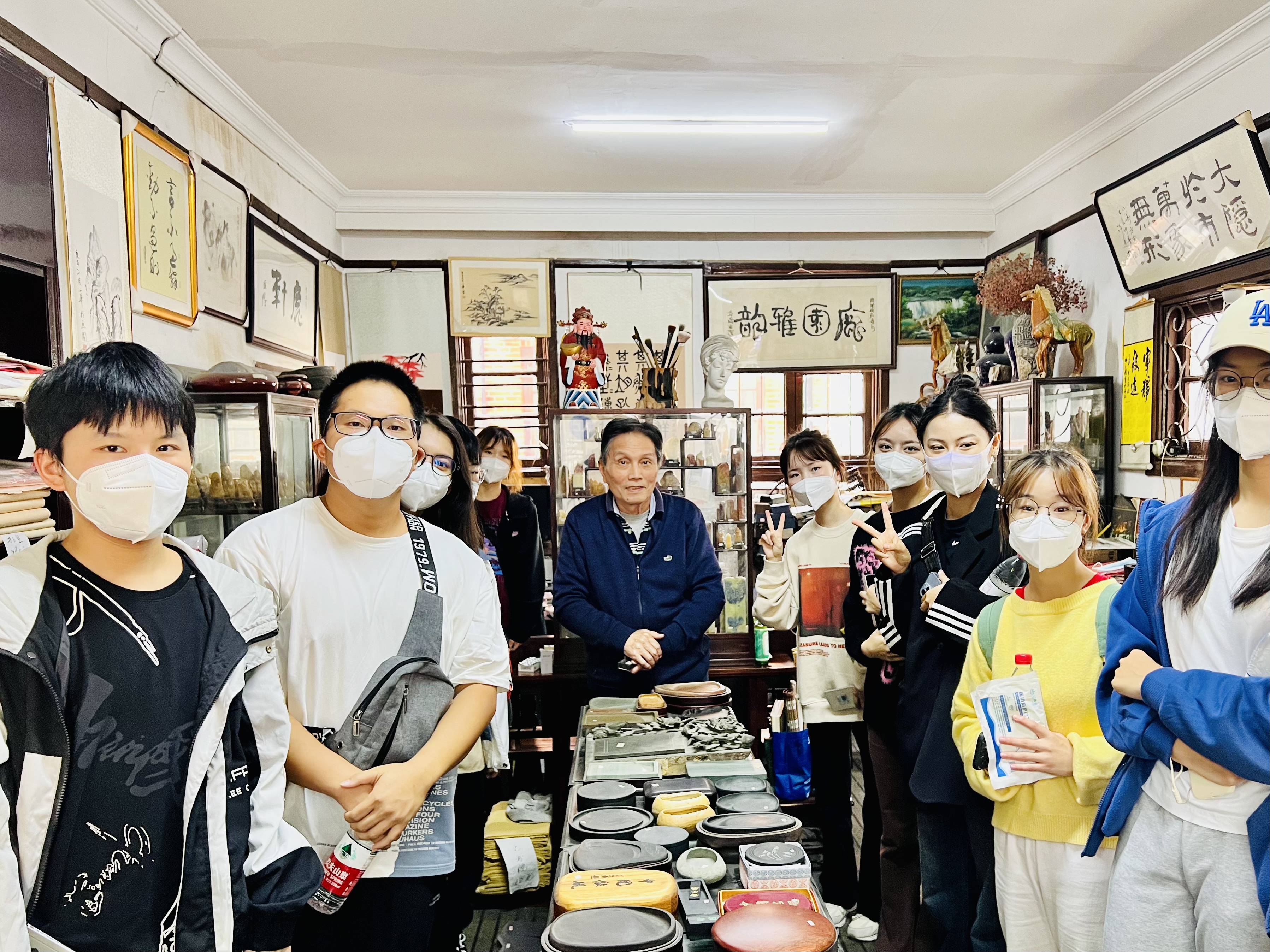 仿古玻璃落地窗、白色拉毛墙、复古雕饰的红砖供券、石库门门头牌匾雕花……百年武夷路上的海派建筑各具特色,又同街区氛围交相辉映,黄色网 少数民族师生漫步在武夷路上,沉浸式体验海派文化。走进武夷路229号“鹿园”,了解 “文房四宝”,听鹿园主人陆小华讲述上海市非物质文化遗产——“写实石砚雕刻技艺”的前世今生;贴近MIX320创意街区,感受弄堂市井生活与潮流文化碰撞的别样惊喜;会聚社区美术馆,通过文化墙上的一张张武夷路新老面貌的对比图,感受我们这十年街区的新颜旧貌。