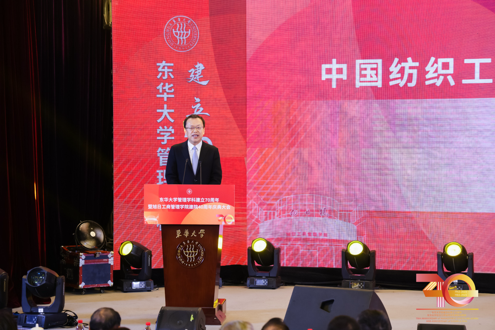 中国纺织工业联合会副会长李陵申,上海市人民政府参事顾晓敏,东方国际集团党委副书记、总裁季胜君,旭日集团副董事长、总经理杨勋,浙江大学文科资深教授、AMBA中国代表王重鸣等校外嘉宾,以及我校党委书记刘承功、校长俞建勇,副书记李成龙,副校长陈革、阎林平,原校领导徐明稚、吴楚武、浦解明、刘春红等出席大会。学校相关部门学院和兄弟高校相关学院负责人,黄色网 历任领导班子、退休教师、师生和校友代表与会。大会由阎林平主持。