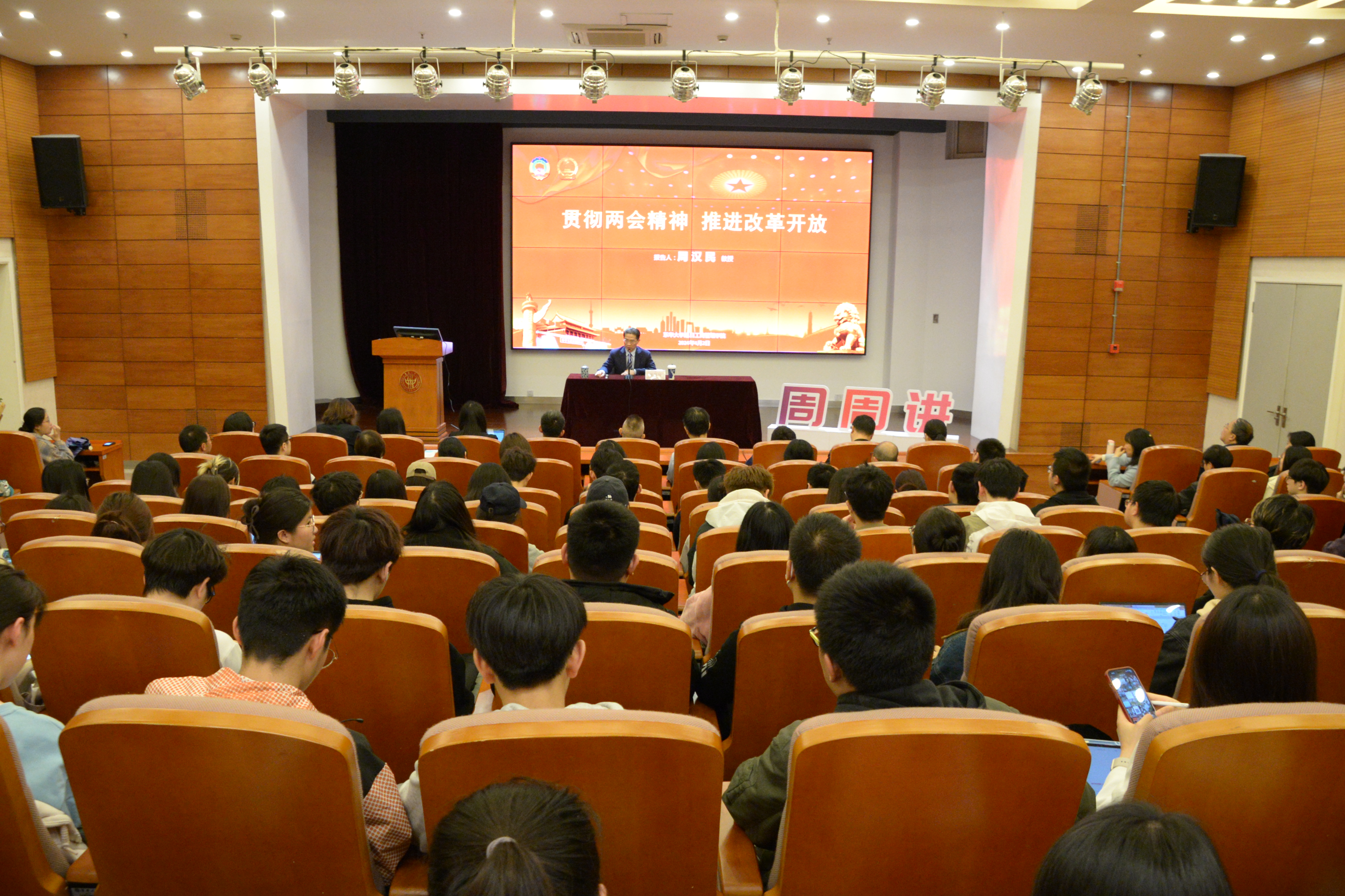 全国政协常委周汉民来校作全国两会精神辅导报告