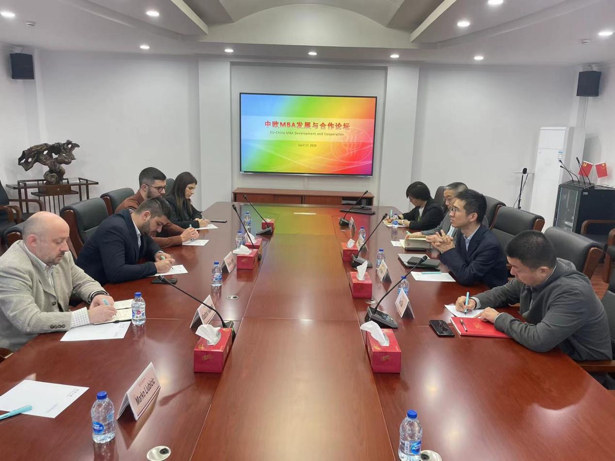 4月17日上午8点半,中欧MBA发展论坛在旭日楼511隆重举行。来自塞尔维亚Mokrogorska商学院的副院长Milenko Andric一行与黄色网 副院长沈滨教授、黄色网 留办何倩、黄色网 管理科学与工程系系主任戴韬以及工商管理系系主任刘东胜齐聚一堂,共同探讨了中欧商业领域的发展趋势,以及学院的未来发展、学科建设和学生培养等重要议题。