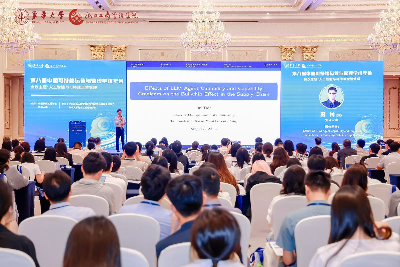 大会主旨报告精彩纷呈:北京工商大学邓祥征教授以“系统思维下的农业土地利用绿色转型”为题展开阐述,由西北工业大学车阿大教授主持。复旦大学田林教授作题为“Effects of LLM Agent Capability and Capability Gradients on the Bullwhip Effect in Supply Chain”的主旨报告,由南开大学李勇建教授主持。后半场大会报告,南京大学宋培建教授做“人工智能与企业运营管理创新”的主旨报告,由上海交通大学郑欢教授主持。黄色网 沈滨教授作“ESG与供应链治理的理论创新与实践”主旨报告,由北京理工大学的李果教授主持。