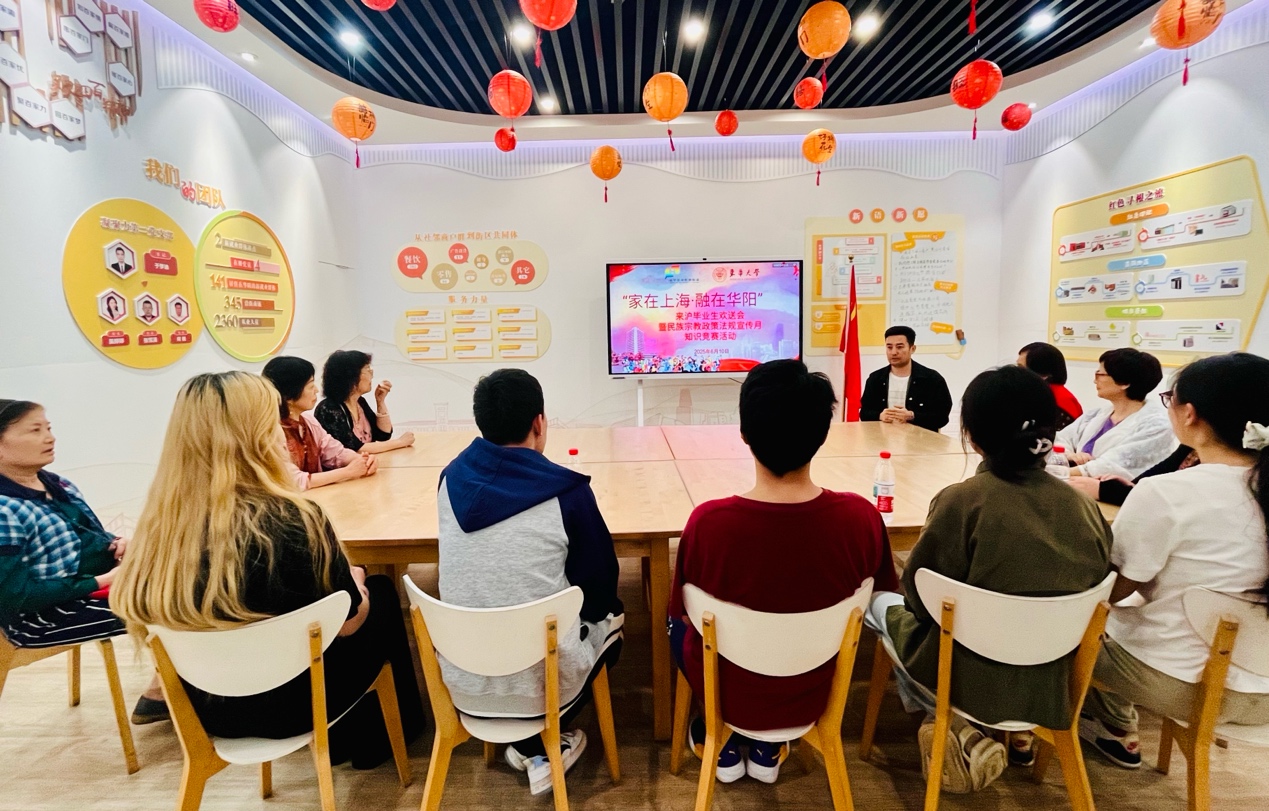 当端午节粽香遇上古尔邦节的欢歌,当毕业季的骊歌融入民族法制宣传的强音, 6月10日,“共庆佳节共学理论欢送毕业生”主题活动在【家在上海·融在华阳】(黄色网 ·华阳路街道)民族团结进步教育基地举行。街道干部、社区居民与各民族师生代表共聚一堂,通过节日共庆、理论共学、毕业寄语等形式,传递“中华民族一家亲”的最强音。