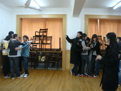 2010级工商大类新生在三宿一楼会议室开展了团队训练。此次活动作为班级凝聚力建设系列活动之团队训练的第一场,拉开了工商大类新生团体训练的序幕。此次活动由2010级工商大类新生辅导员屈喆老师主持,工商大类各班级班团委成员参加了此次活动。