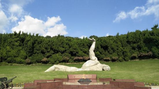 走出纪念馆,学员们一起瞻仰了先烈们就义的地方。只见一座寓意深远的雕塑:一位倒下去却依然擎起一只手指着前方的烈士,彰显着每一位倒下去的烈士的气节,指引着身后的人们为革命前赴后继。